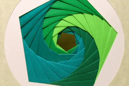 Iris vouwen is een handwerktechniek waarbij je strookjes papier in een spiraalvormig patroon op een uitgesneden vorm plakt. Dit creëert een patroon waarbij de kleuren van de papierstrookjes als een spiraal naar het midden toe lopen, vergelijkbaar met de pupil van een iris.